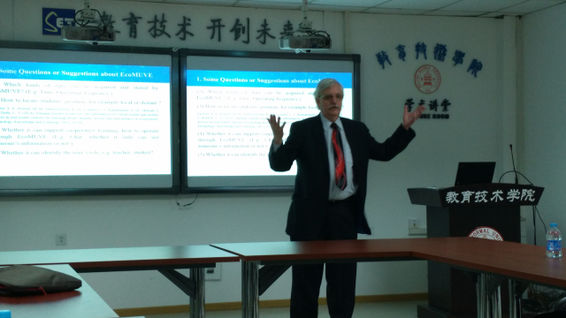 2016年1月14日,哈佛大学Chris Dede教授访问北京师范大学“移动学习”教育部-中国移动联合实验室,联合实验室余胜泉教授、吴娟副教授、李青博士后、万海鹏博士、王阿习博士、访问学者田嵩以及耿鹏进行了接待。首先,余胜泉教授对Chris Dede教授的来访表示欢迎,接着Chris Dede教授介绍了其所做的有关虚拟学习环境EcoMUVE方面的研究。随后余胜泉教授介绍了其团队研发的泛在学习平台“Learning Cell Knowledge Community”系统(学习元系统),系统阐述了学习元的理念与结构以及研究应用场景。最后,万海鹏博士对双方拟开展的项目合作计划进行了详细介绍。双方都对对方的研究表示认同与欣赏,认为学习元平台与EcoMUVE的结合将会产生更好的研究点以及应用效果,后期将就研究计划进行更加深入的探讨和交流,如果合作协议达成,双方将互派研究人员在对方学校开展研究。