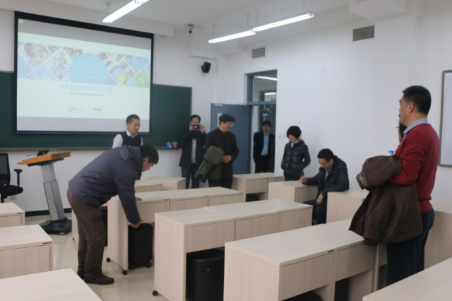 随后,联合实验室马宁副主任针对三个1工程中的百所示范校应用——移动云课堂项目的代表性模式与案例,从解决方案、学生发展目标、研究路径、代表性模式等角度,结合课内教学、课内外融合、教师发展、教育公平等四个方面进行了汇报与演示。随后,与会专家到未来学习体验中心现场考察。