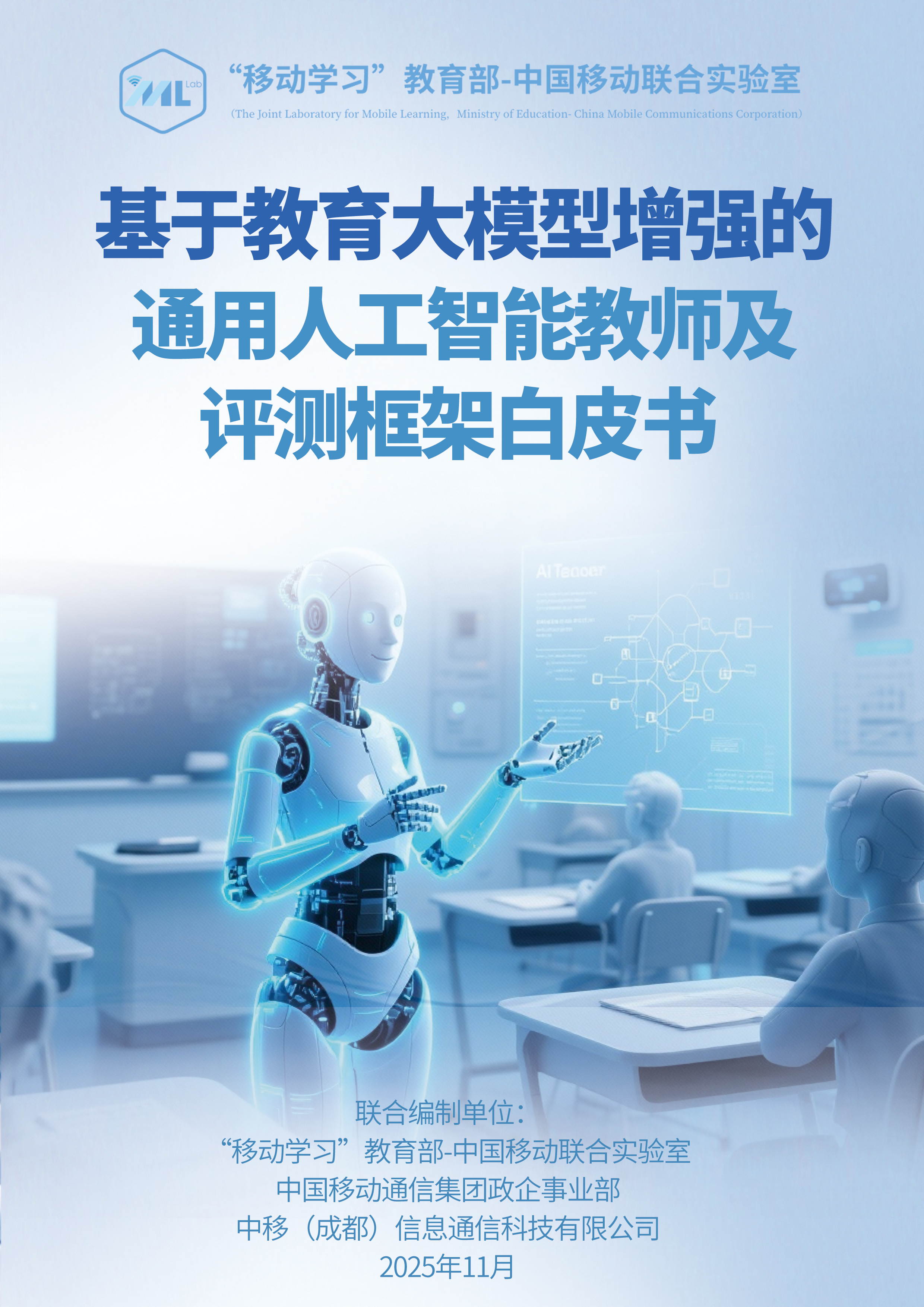 "移动学习"教育部---中国移动联合实验室11月16日,在广东珠海国际会展中心举办的第七届中国教育创新成果公益博览会“人工智能赋能科学教育高质量发展”分论坛上,“移动学习”教育部-中国移动联合实验室与中国移动联合发布了《基于教育大模型增强的通用人工智能教师及评测框架白皮书》与《中国移动智慧校园总体安全指数白皮书》。两份白皮书由“移动学习”教育部-中国移动联合实验室、中国移动通信集团政企事业部 、中移(成都)信息通信科技有限公司联合编制。